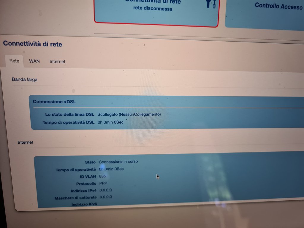 In più, ho collegato il modem alle 16 circa e si è connesso a internet alle 20 circa, ho riavviato il modem e per due ore non ha più agganciato il segnale.
