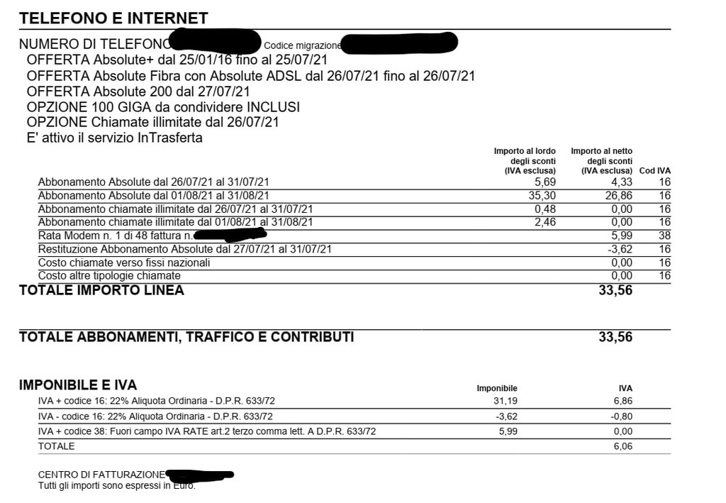 Come temevo, mi hanno addebitato le rate del modem e come se non bastasse il costo dell'offerta è anche aumentato.