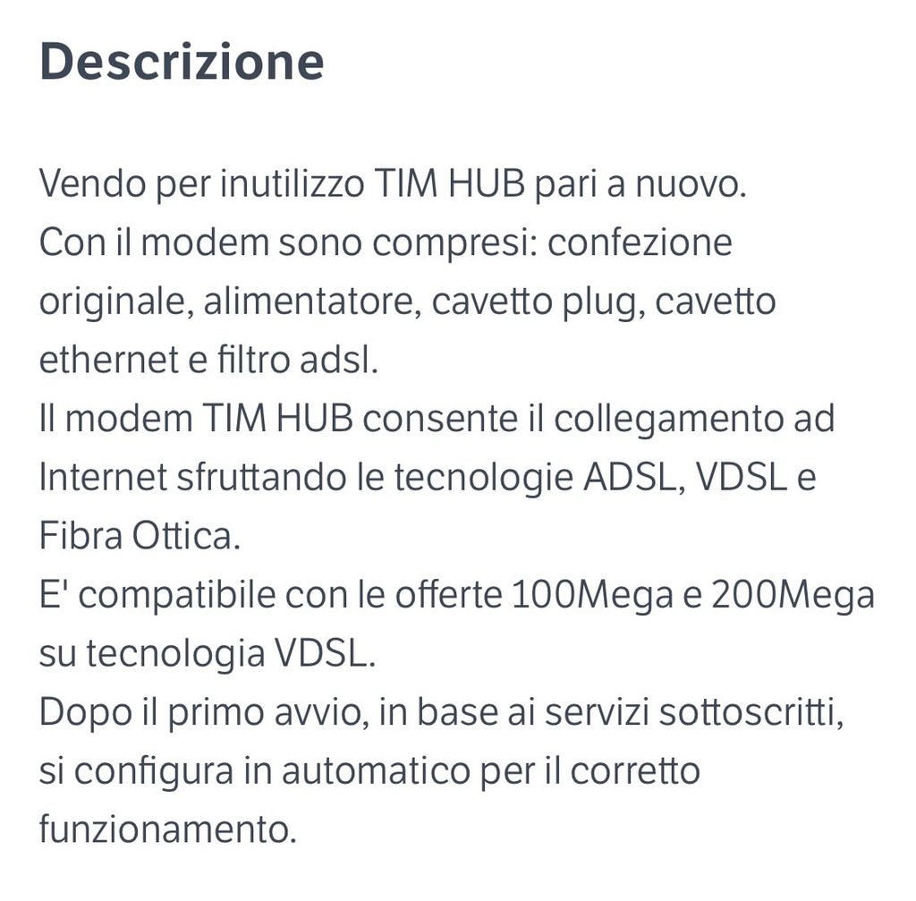 Stavo valutando appunto il Tim Hub Standard non avendo particolari necessità, non attivando la linea fissa e preferendo un modem autoconfigurante. In ogni caso, prima di procedere con l’acquisto, vorrei anche valutare altre opzioni: un modem diverso sarebbe poi così difficile da configurare anche per una persona che ne sa comunque poco in materia (ma non pochissimo!)? Oppure consigliate quello in foto? Grazie in anticipo!