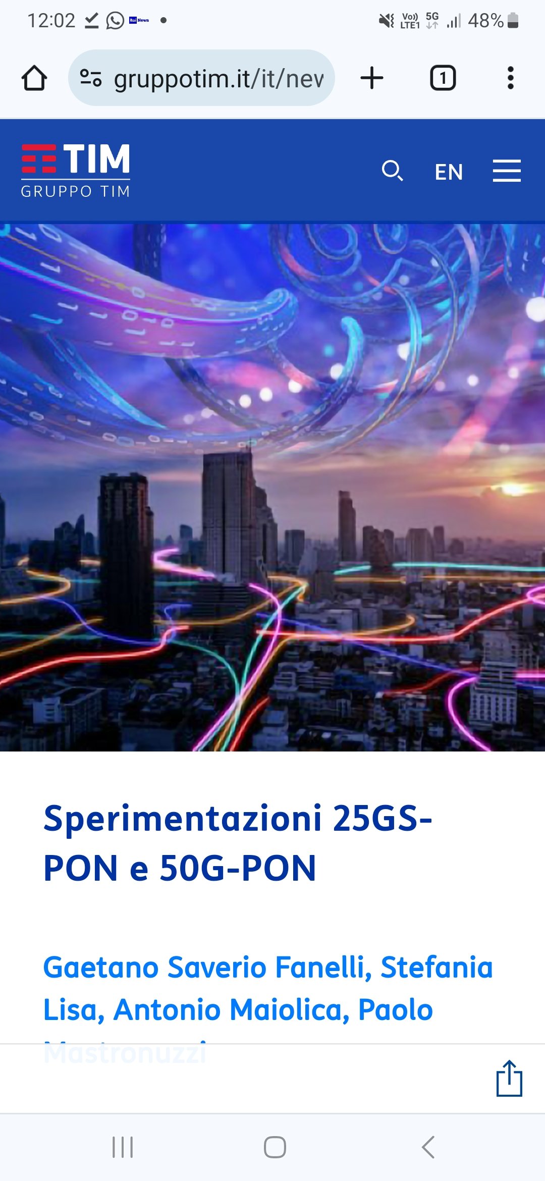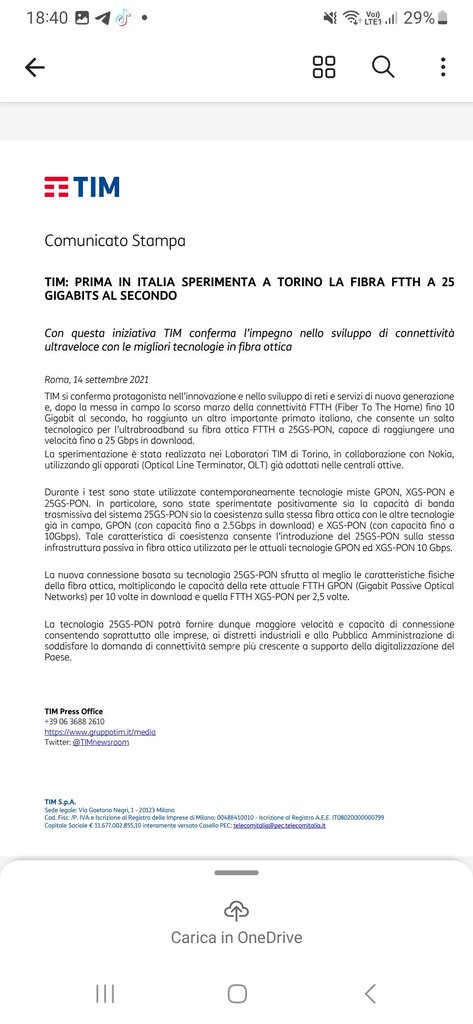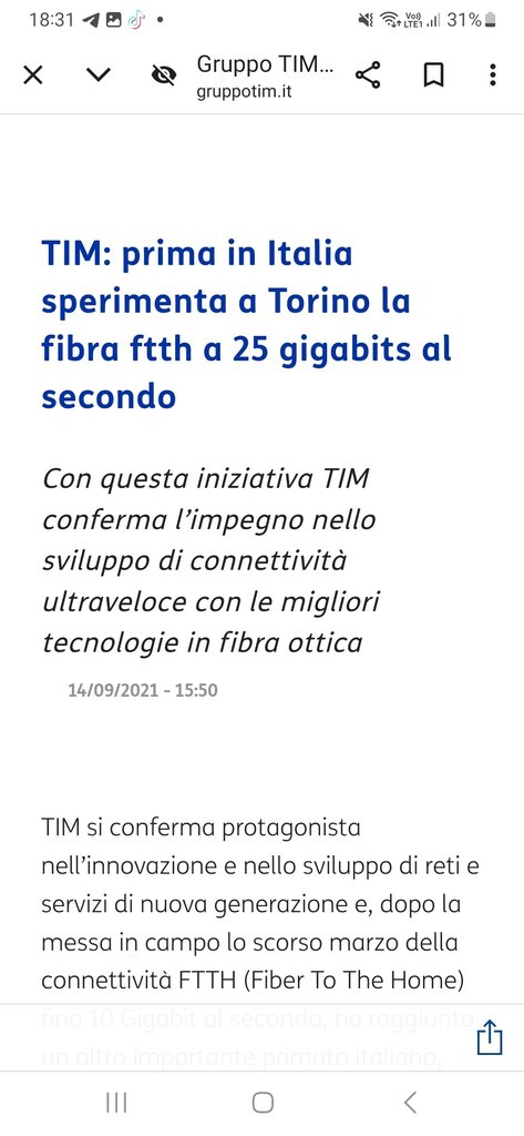 che belle parole di rito peccato che la grande maggioranza del paese non è nemmeno coperta dalla 10Gb/s figuriamoci della 50Gb/s , a meno che per la TIM il paese non sia solo Torino 🤣
