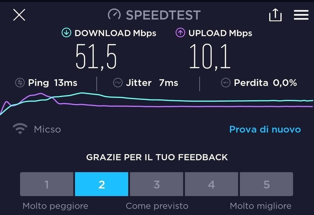 e l'ho installata... Le prestazioni sono accettabili, sopratutto per 16 euro al mese (bts a 1.9km). La velocità (come anche il jitter) purtroppo é abbastanza instabile, in quanto oscilla tra 20 e 70 mbps. Valuterò in questi 15 giorni e vi farò sapere