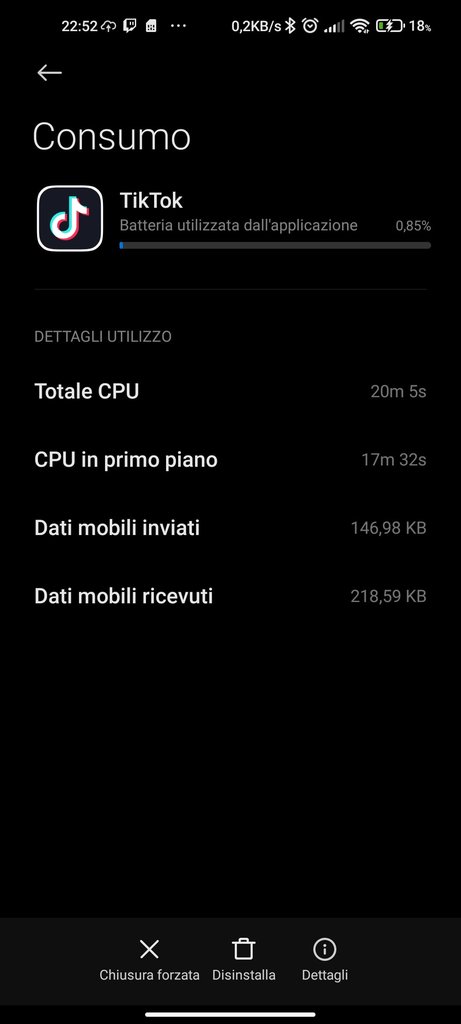Screenshot di ogni singola app con relativo tempo di utilizzo: