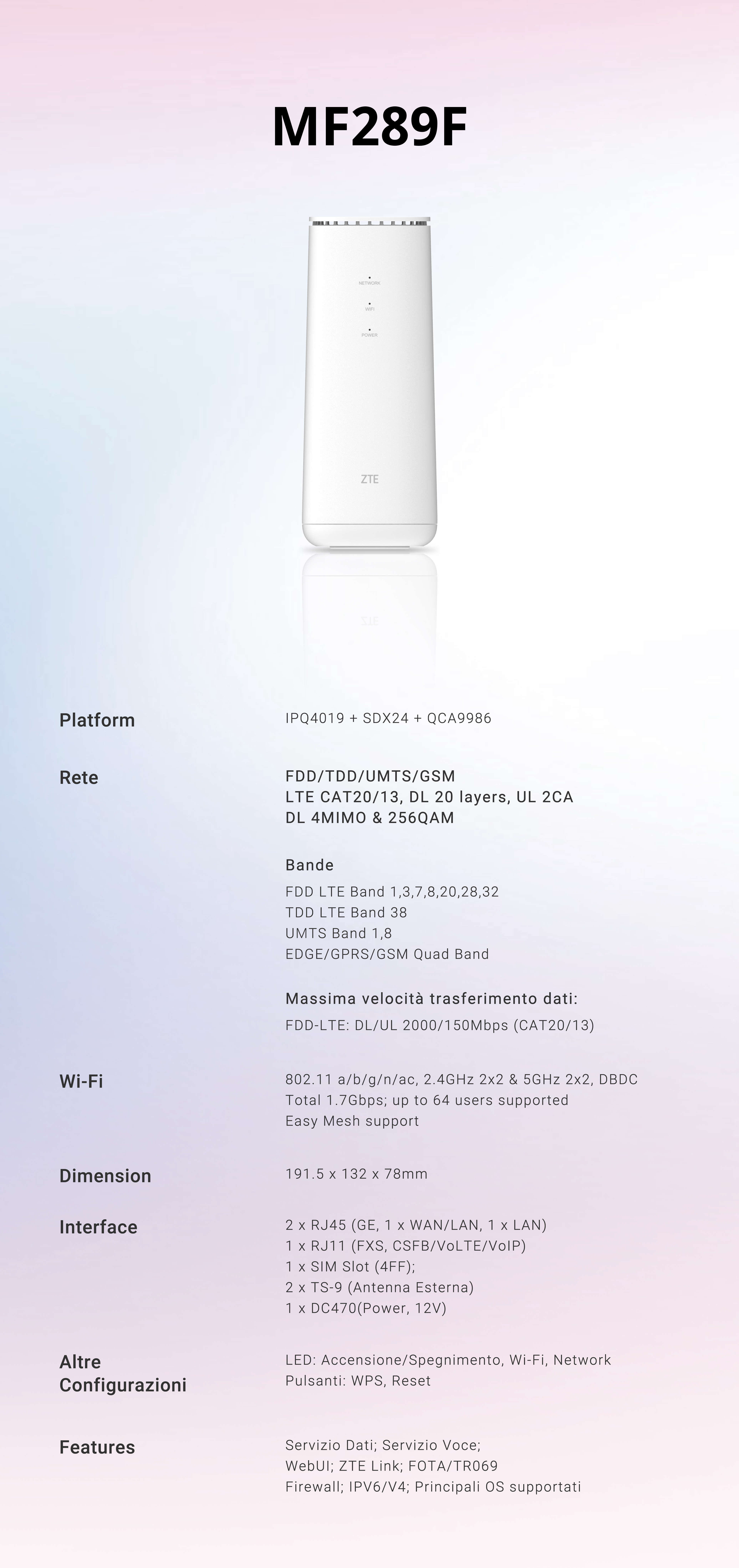 ho in prova un modem indoor vodafone, il modello è il MF289F: