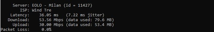 Ah i test sono stati SEMPRE eseguiti su server EOLO (o speedtest.net o test.eolo.it), mentre quelli in wifi vengono eseguiti dall'applicazione di speedtest, ovviamente sempre server eolo