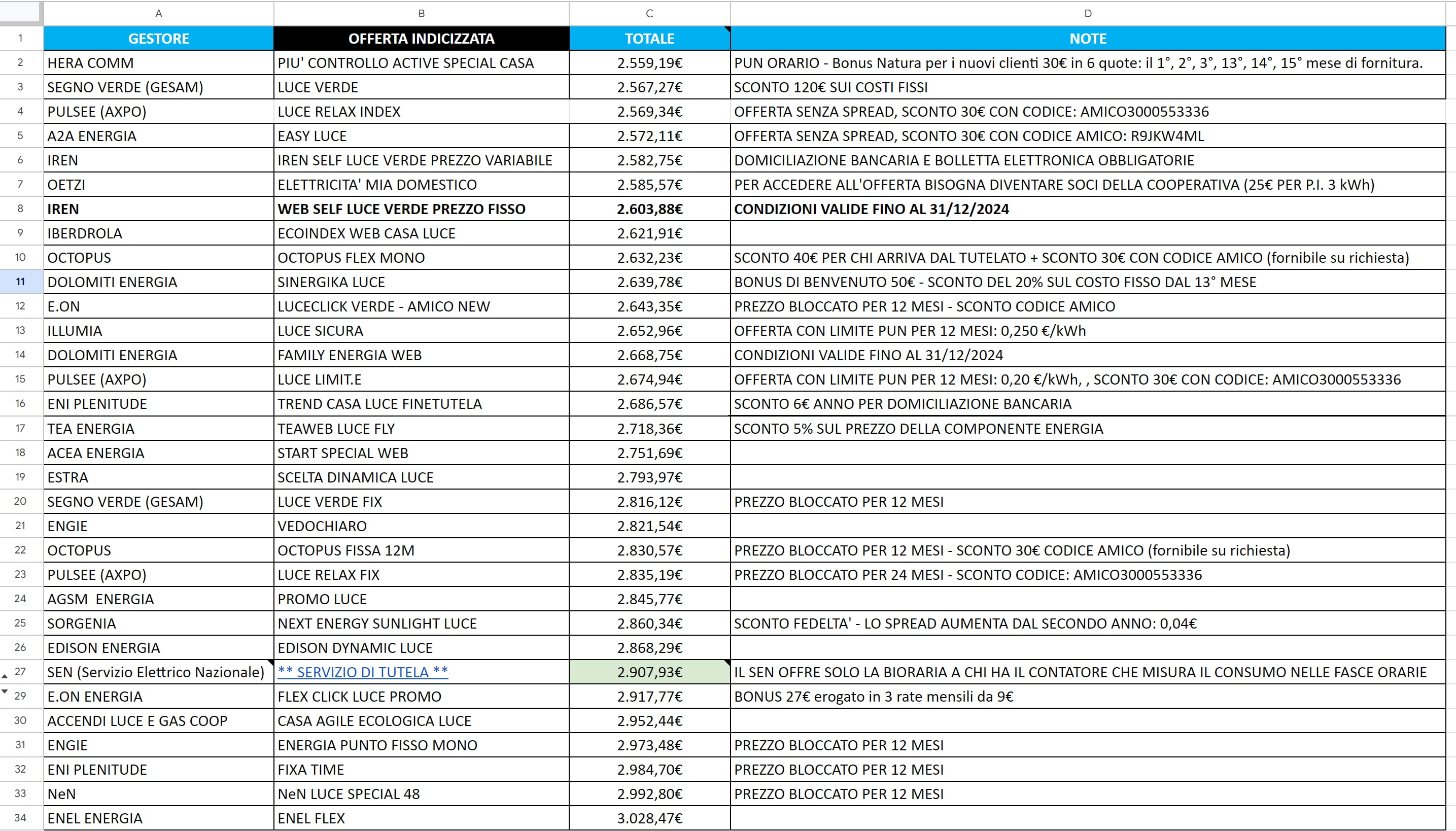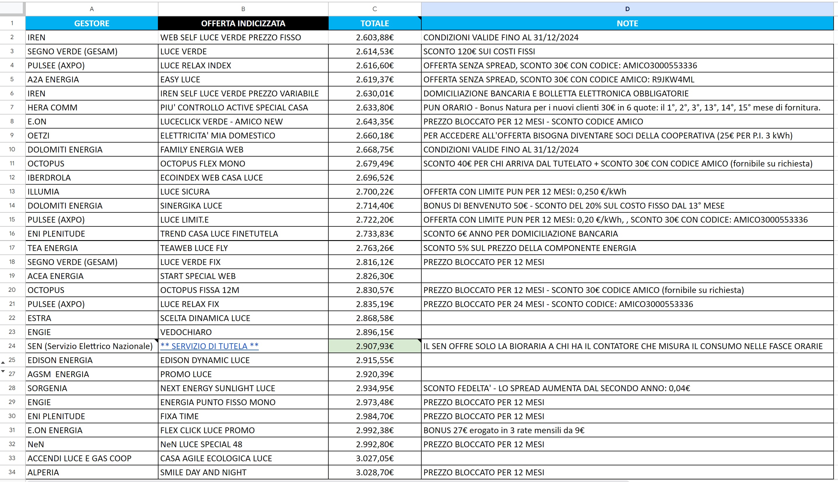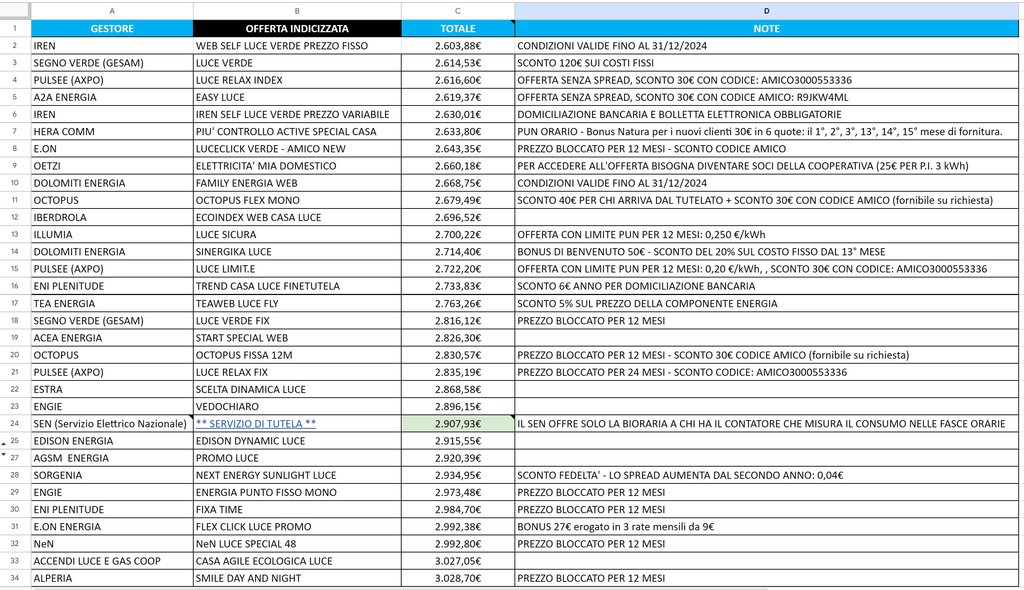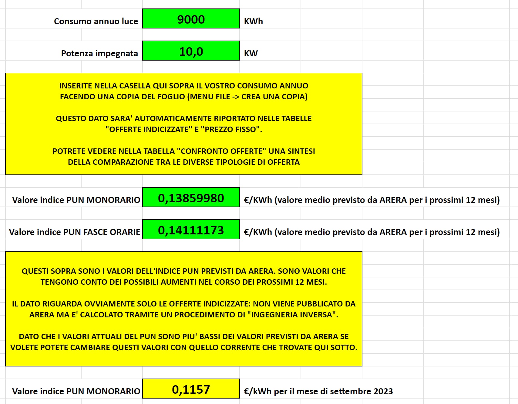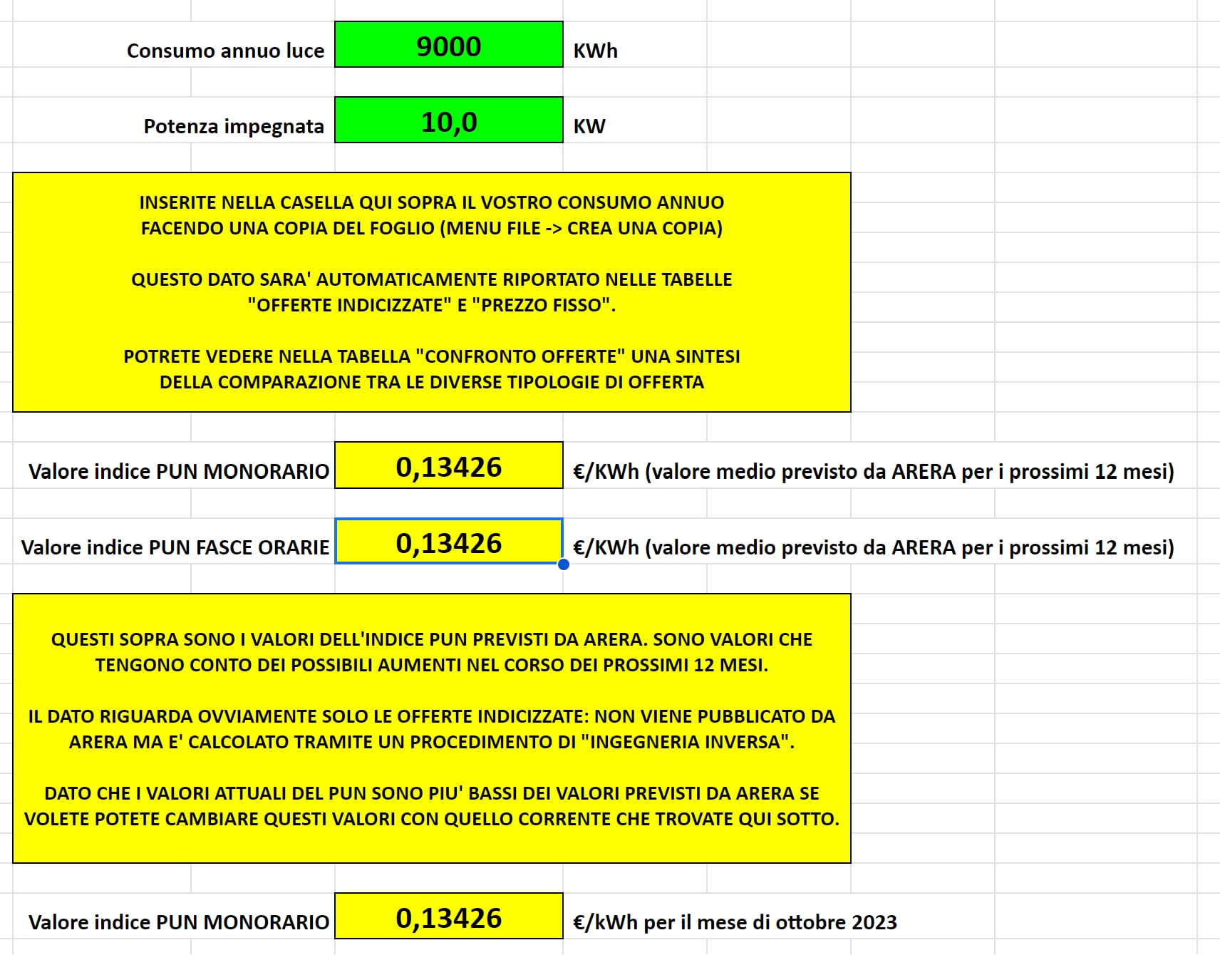Cambiando con il PUN di ottobre il risultato mi sembra cambiare poco.