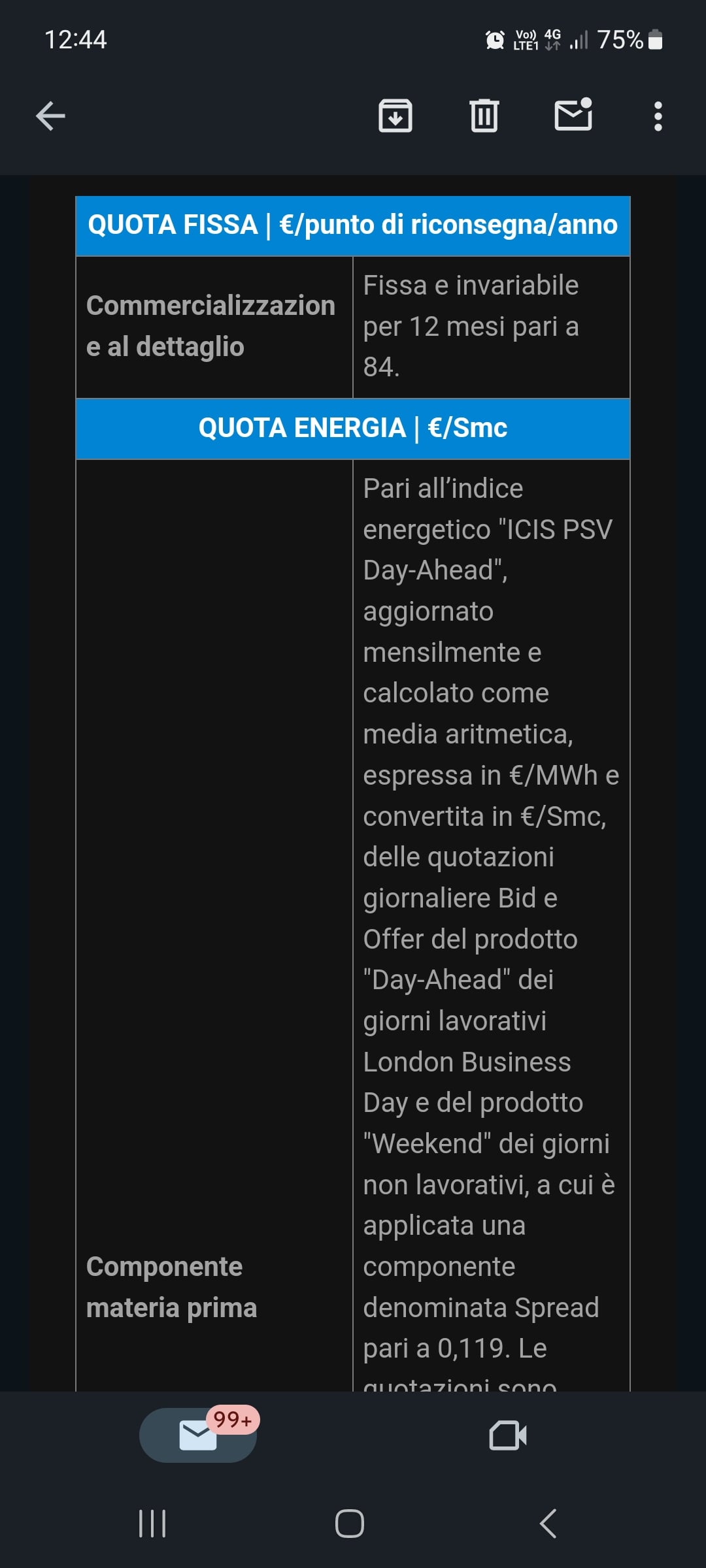 Miyum Venom90 Come dice Mirko, è la mail di rinnovo che ti arriva generalmente 3 mesi prima della scadenza. Da quello che leggo, il costo di commercializzazione resta invariato, ma andrai a pagare uno spread di 0,119 smc. Non so quanto tu stia pagando ora di spread, presumo meno, ma inizia a guardare altrove.