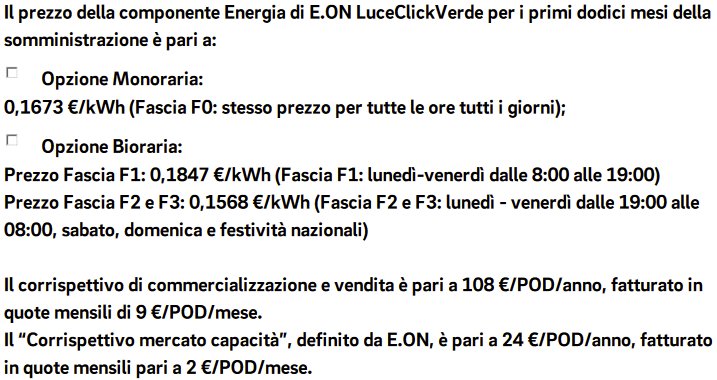 Mario_Rossi domanda da un milione Dal primo novembre sono con E.ON a queste condizioni: fatto il passaggio per evitare il rinnovo a prezzi esagerati del precedente gestore Dite che è il momento giusto per passare ad altro operatore, tipo octopus? Storicamente il mese di aprile dovrebbe essere quello con i prezzi migliori per scegliere il prezzo fisso migliore, giusto?