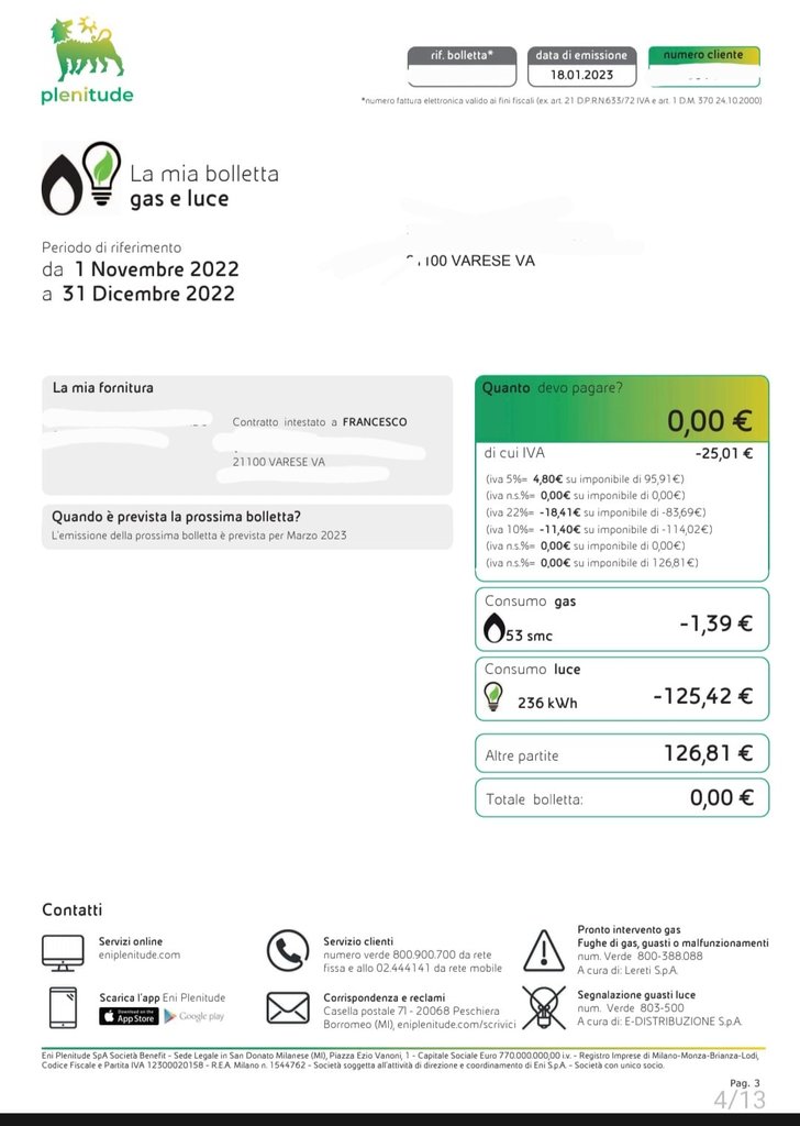 laresadeitonti Venom90 come mai proprio a zero? I bonus sociali erano identici a quello che dovevi? Chiedo perché ho visto diverse bollette a credito e non capisco. Plenitude li accumula per le future bollette invece di darli direttamente a cliente?