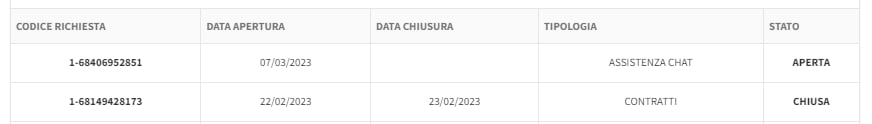 Nelle richieste adesso vedo le due righe, la prima di oggi e la seconda del giorno della telefonata