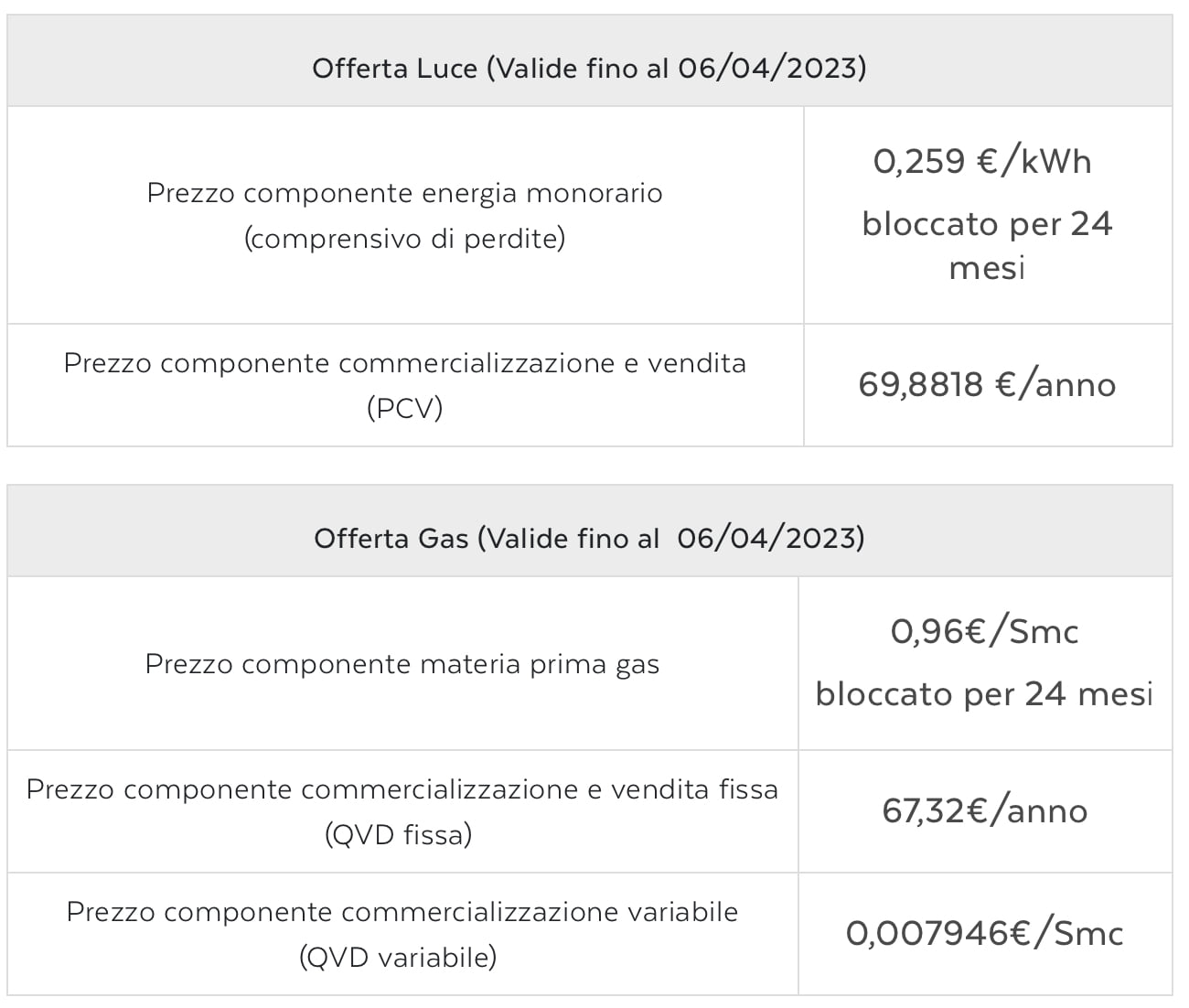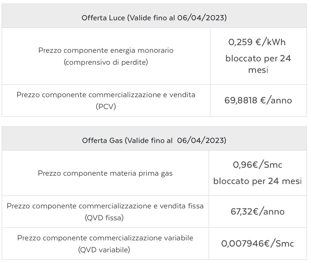 "ti confermiamo che abbiamo ricevuto la richiesta di attivazione dell'Offerta Più Controllo Special Flat Luce.