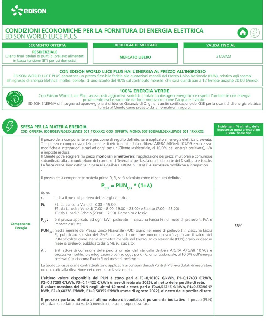 condizioni economiche della tua offerta BIORARIA che saranno applicate a partire dal 01/06/2023 per un