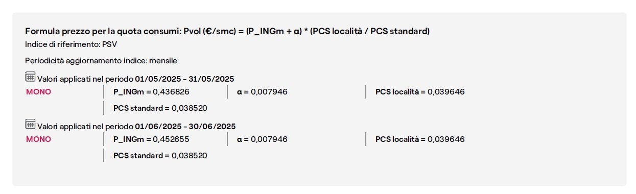 PSV + spread, dove lo spread era la somma delle componenti CCR e QVD stabilite da Arera. Fin qui tutto regolare.