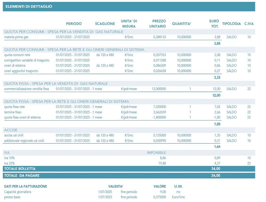 Utilizzando il foglio Arera, il conto torna (es. Maggio 2025):