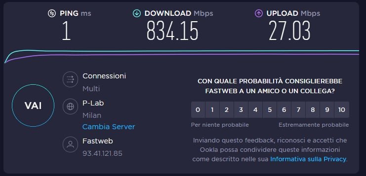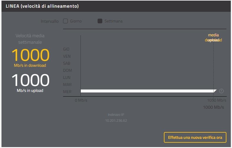 sulla schermata del router (il fastgate di fastweb) mi riporta come velocità di allineamento 1000mbs sia in download che in upload