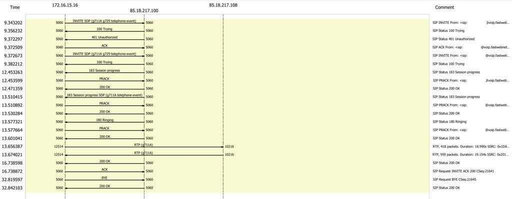 Qui è PBX a iniziare la sessione, di conseguenza è sufficiente avere NAT outbound statico sulla porta 5060 per far funzionare tutto a dovere.