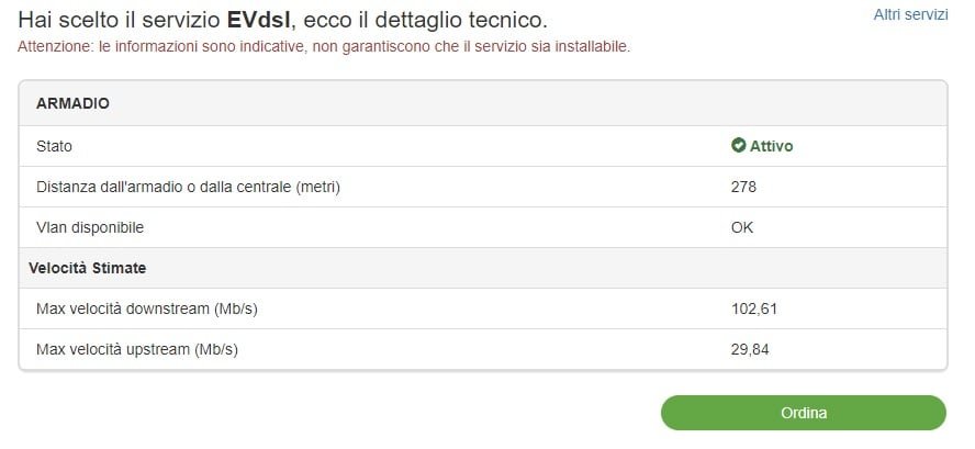Da FiberMap mi trovo a 278m dall'armadio con questi parametri raggiungibili:
