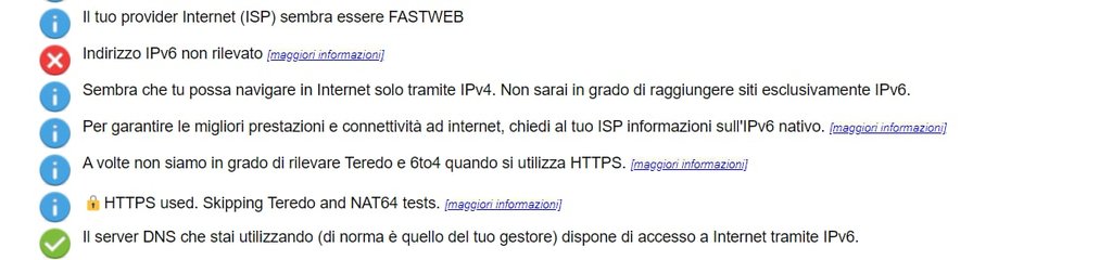 Come etto navigo senza problemi però se vado su https://test-ipv6.com/ dice che non torva il mio indirizzo ip come riporato dall'immagine qui sotto.