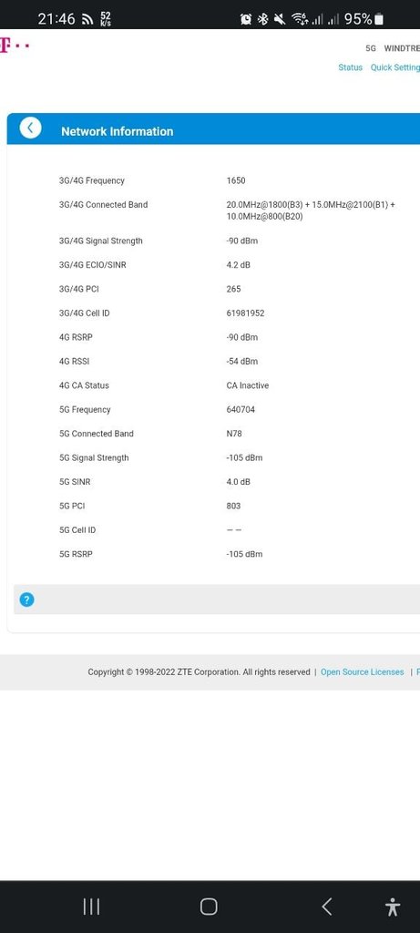 Sciumba Boh sinceramente fino a ieri si connetteva in n78 la mattina almeno sui 150 mega in dw e la sera sempre sui 60-70 , oggi che hanno attivato i 60mhz in Veneto , il router si connette sempre in n3 , ho provato con hack miononno a impostare n78 ma migliora di poco , invece con lo smartphone con Fastweb sotto windtre aggancio la stessa BTS del router ma con valori molto superiori
