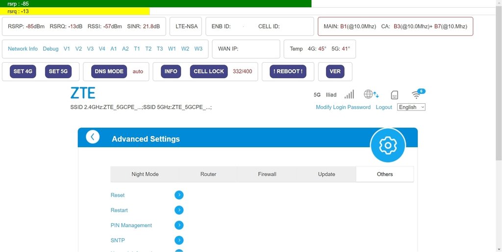 -82 di rsrp e -9 di rsrq non sono cmq per niente male... boh, non saprei, credo che quella bts sia abbastanza carica... ho provato a posizionare il mio 801 in un punto dove ho circa -85 di rsrp e con solo 3 bande a 10Mhz (Iliad) faccio cmq intorno a 130Mbps (e la sera la cella e' molto carica.... la mattina farei molto di piu'...)