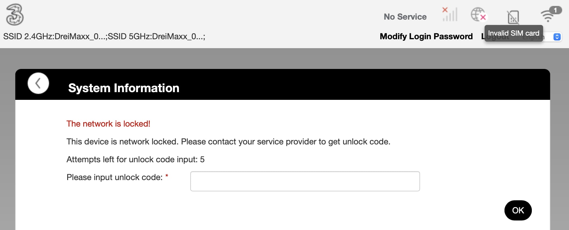 sinophilia ale_prince grazie per la tua risposta. Non riesco ad accedere alla maggior parte delle impostazioni del router perché mi compare quasi sempre questa schermata... la dicitura network locked non mi fa ben sperare 😃 MI chiede un codice di 16 caratteri.