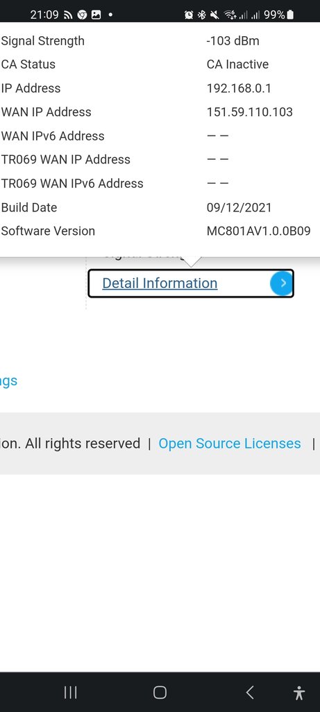 giulio21 Sciumba ottimo come valori sei fortunato, avere 100 mega in down e 53 in up è grasso che cola fidati, in 5g sei penalizzato dalla lontananza dell'antenna hai -105dbm quindi normale che non hai valori di down e up più alti, ma stai soddisfatto Consiglio: per aprire le schermate del modem usa google chrome da pc che ha il traduttore automatico delle pagine in italiano ciao