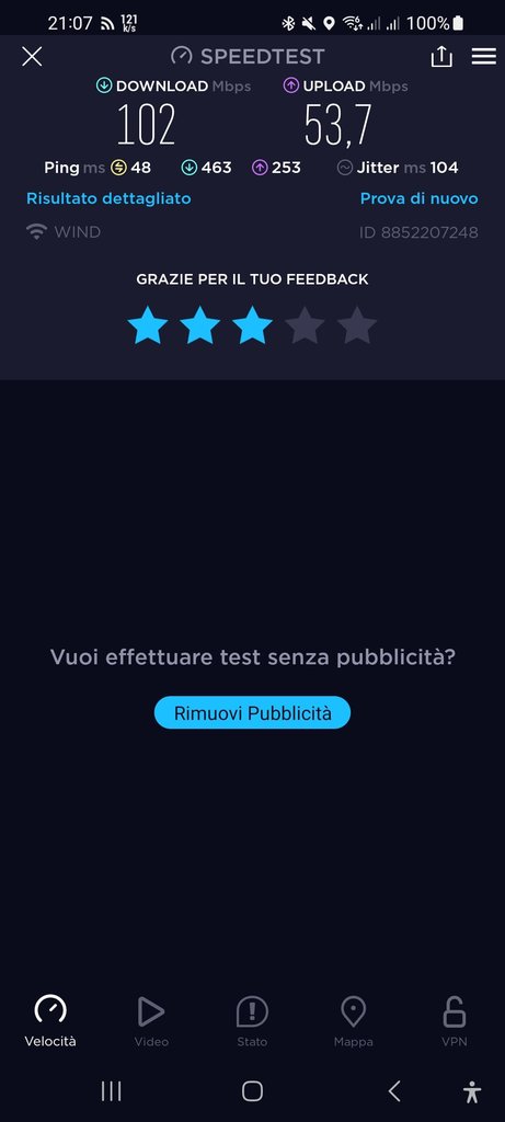 ale_prince giulio21 avere 100 mega in down e 53 in up è grasso che cola fidati infatti!e ce li ho anche nelle ore di punta(forse perchè bts scarica)quindi anche senza 5G al momento io sono molto soddisfatto!poi ovvio che anch'io spero in un upgrade della rete per sfruttarlo al meglio😉