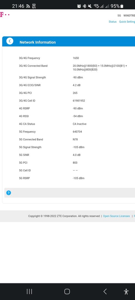 Sciumba ale_prince ma tanto che ti cambia? Si beh infine i modem sono quasi tutti uguali ma sai come la lingua è la lingua 😅, si per ora la situazione è migliorata incrociamo le dita che più avanti sistemino la rete come si deve! Tu che dici non mi intendo per i valori del 5g ma non sembrano molto buoni!!!