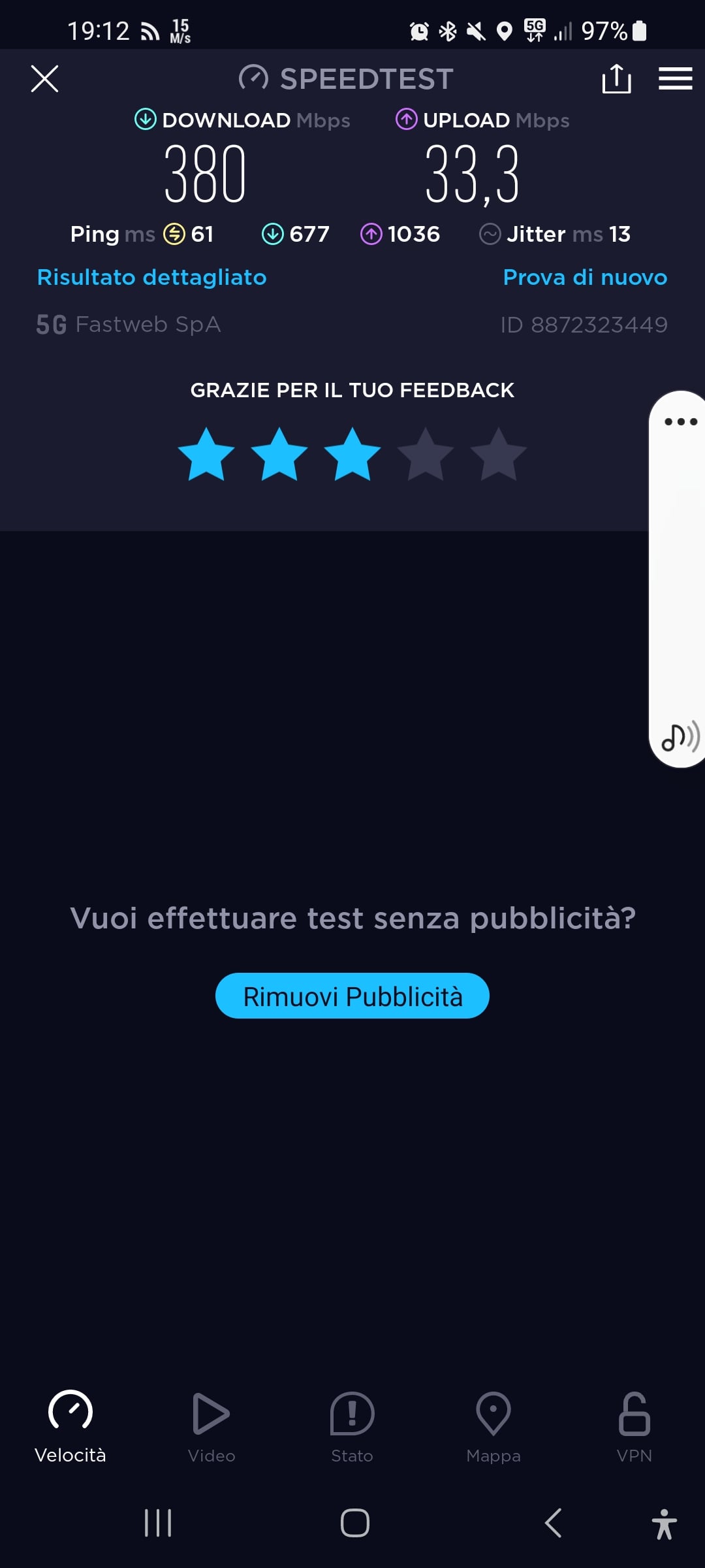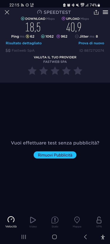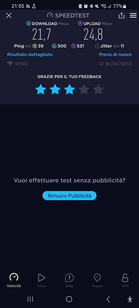 sinophilia Vedo ora che avete dei valori da paura allo speedtest 😃 Io posizionandolo vicino a una finestra ho registrato al massimo questi valori, e mi sembra che navighi tutto alla grande... Sono in centro a Verona.