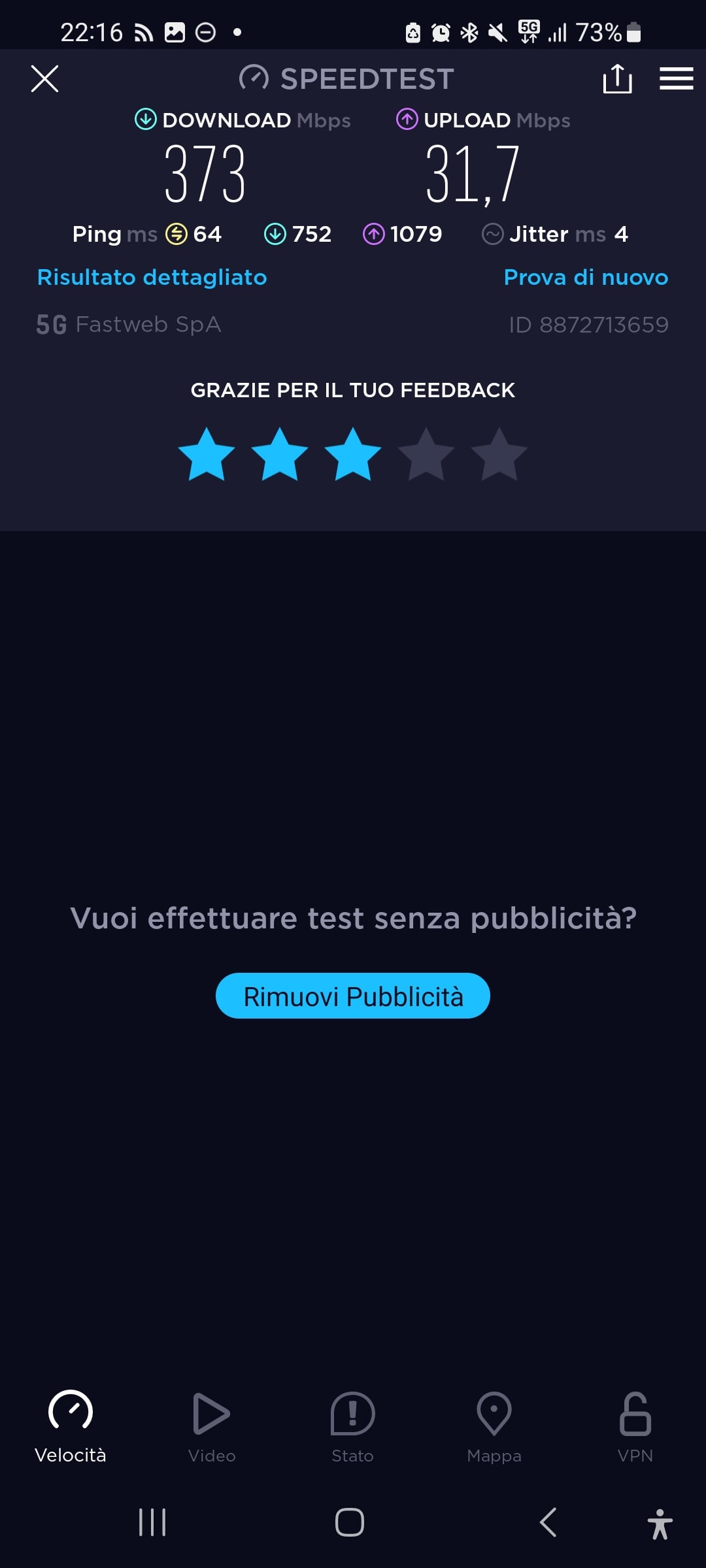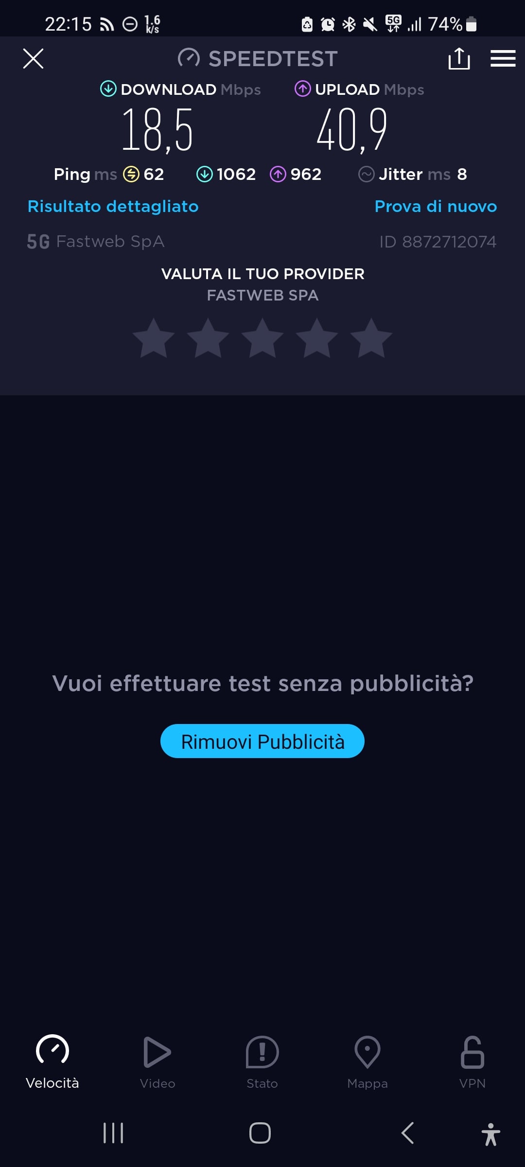 ale_prince ping e l'upload bene🙂 in download si può fare molto meglio ma dipende sempre da molti fattori🙂
