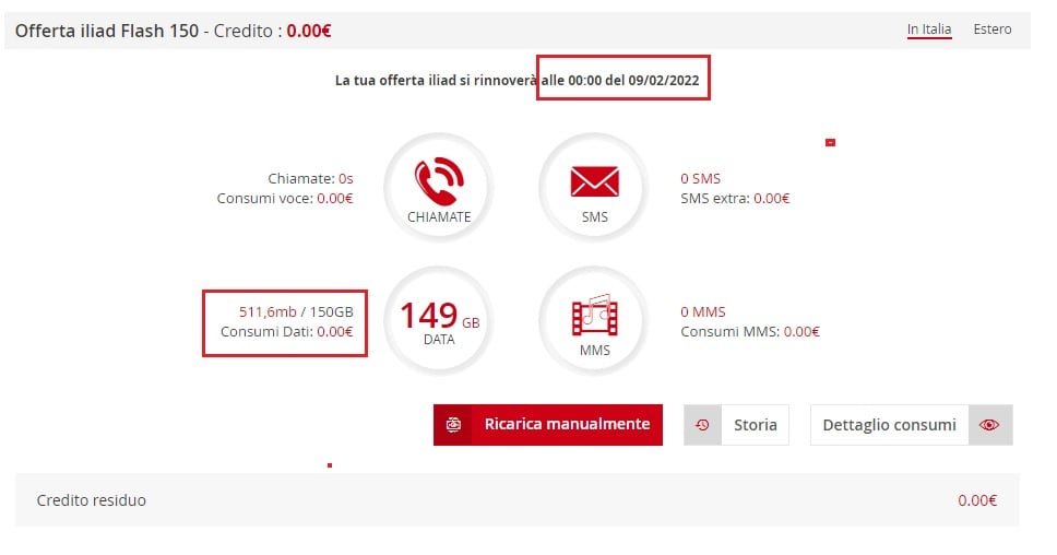 In secundis: vedo che il credito è a zero. Se i mega di oggi fossero calcolati sul piano base il credito sarebbe negativo?