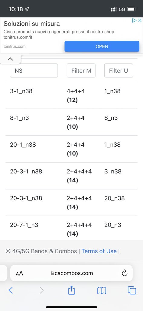 MattCross Camel90 si esatto però voglio dire N3 in 5g l aggrega anche senza la b7 in mezzo ? (Su Cacombos questa configurazione non è menzionata per iPhone 12, credevo potesse fare solo 5g DSS combo se era presente una b7) queste le combo