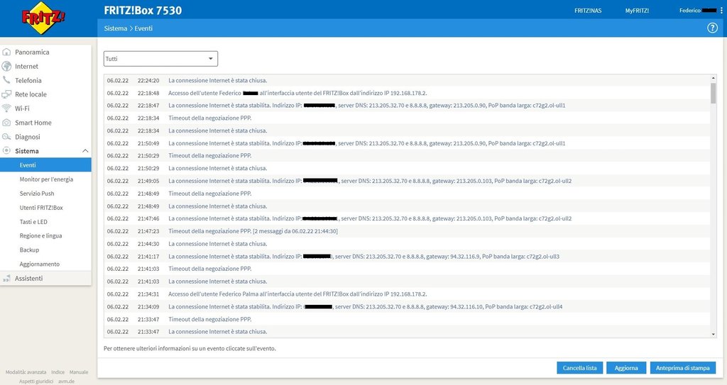 La sera, soprattutto nel fine settimana continuano ad esserci sempre le solite 5-10 e più disconnessioni, senza caduta di portante (connessa da più di 14 giorni ormai). Pochi errori DTU Coretti.