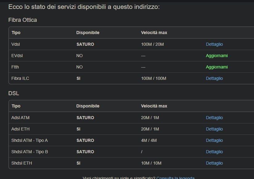 Tutti i servizi di verifica copertura fibra mi segnalano che al mio indirizzo non è disponibile ma la cosa strana è che quando è venuto il tecnico TIM per l'abilitazione della ADSL (e successivamente ne sono venuti altri 2) hanno riscontrato che la sezione fibra del cabinet non è assolutamente satura.