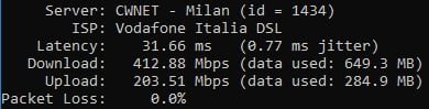 EDIT: Aggiungo che per qualche motivo il server Vodafone di Milano pinga 10ms in più del solito per me (Vivo in Sicilia)