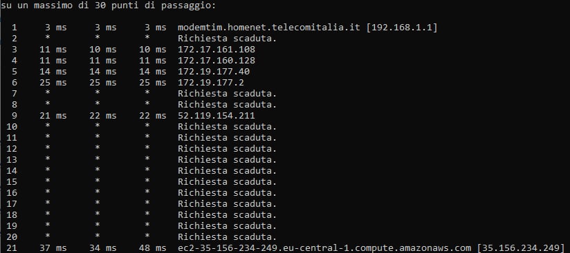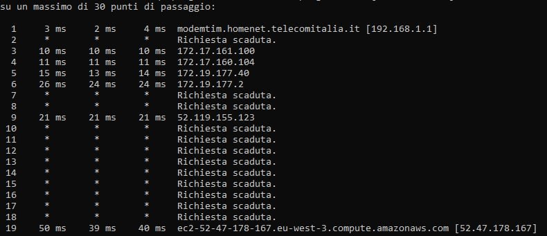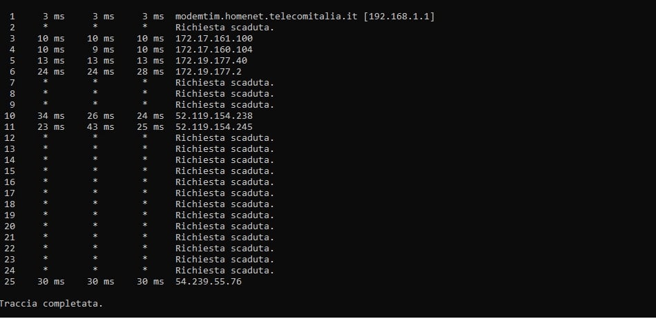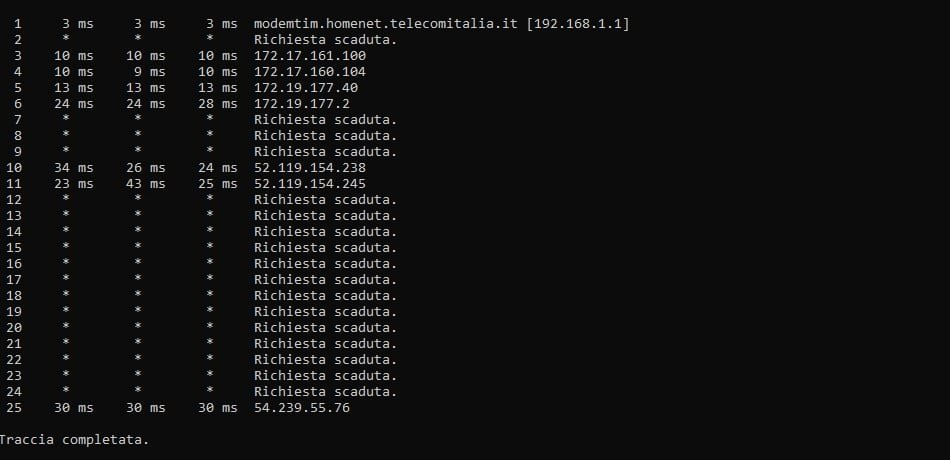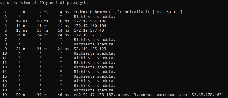 Questi sono i tracert da una FTTC Wind in provincia di Napoli raccolta a Salerno (~3ms in più rispetto alla raccolta Napoli):