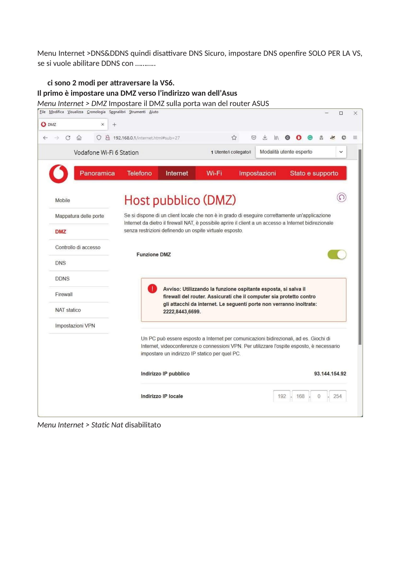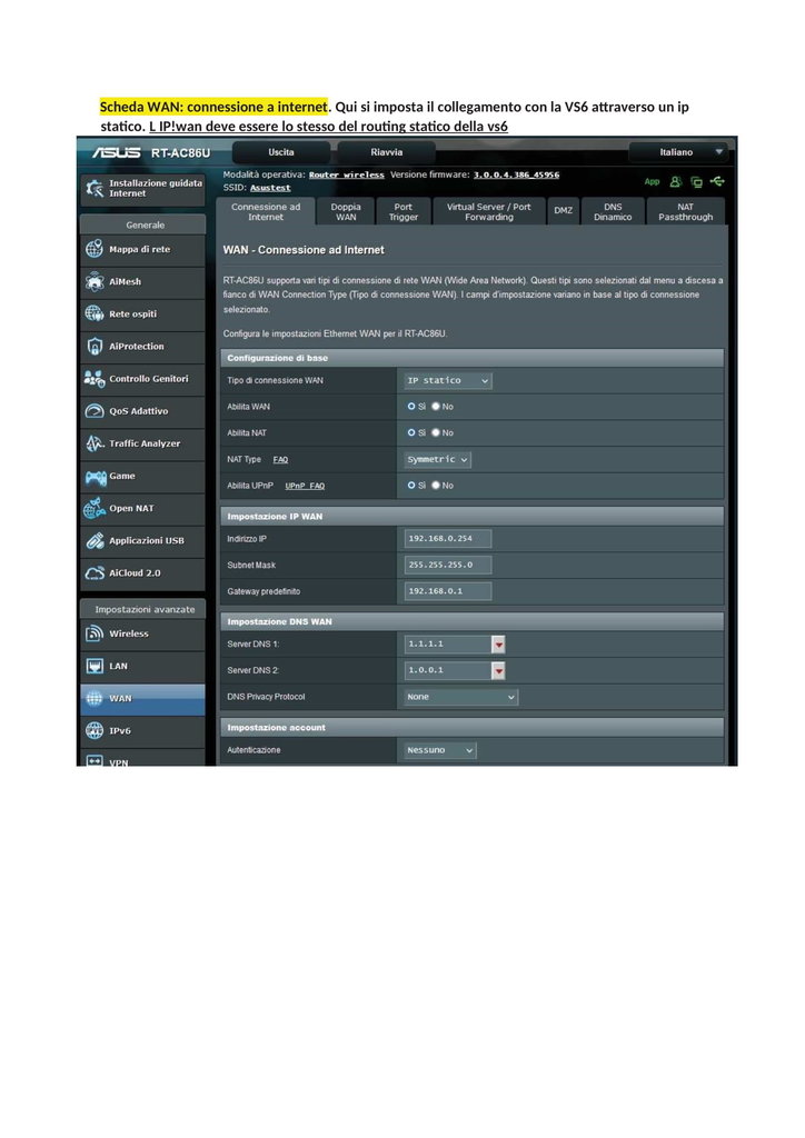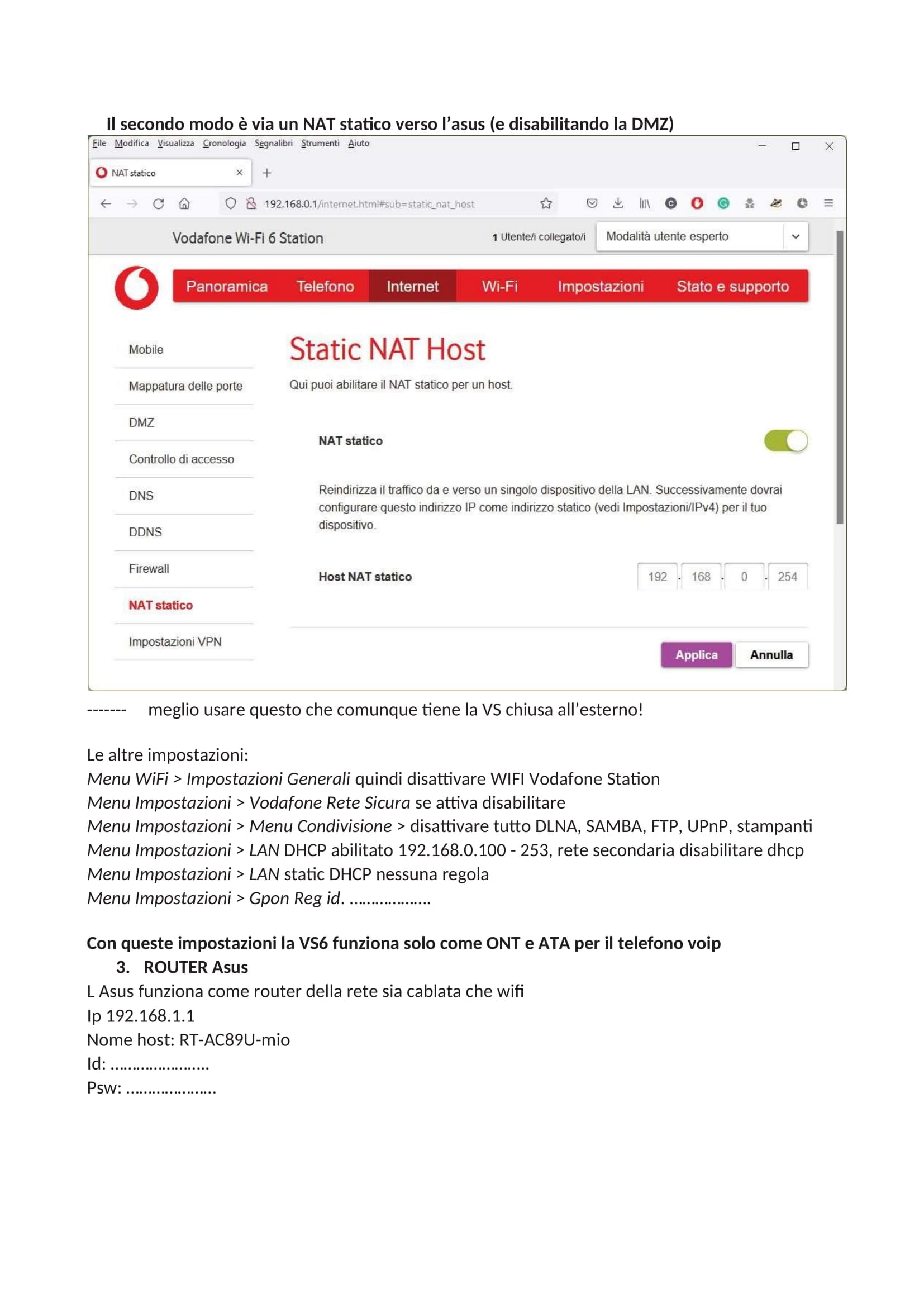 Insomma mi sono messa ad armeggiare per mettere il MIO router, un Asus ac rt86U, al posto della VS6.