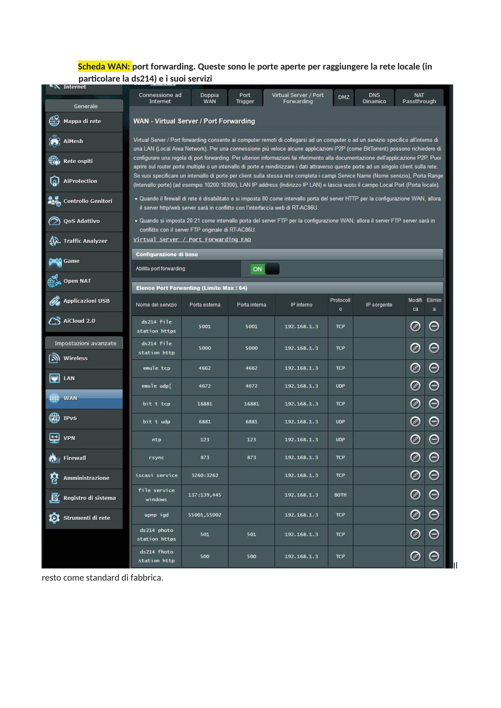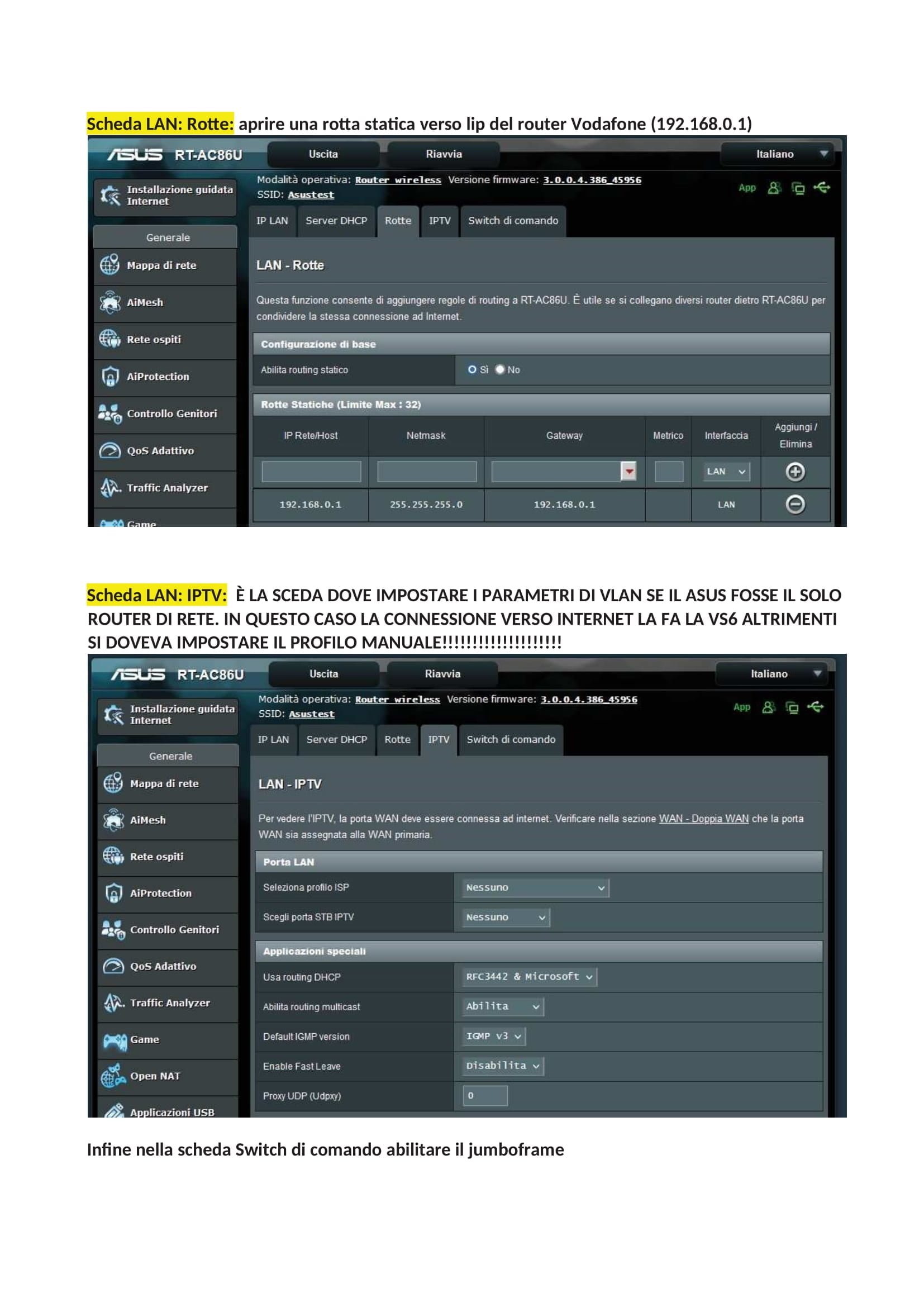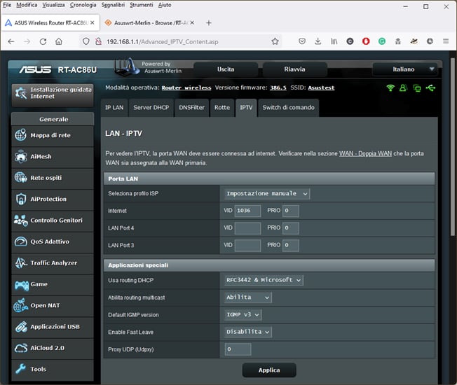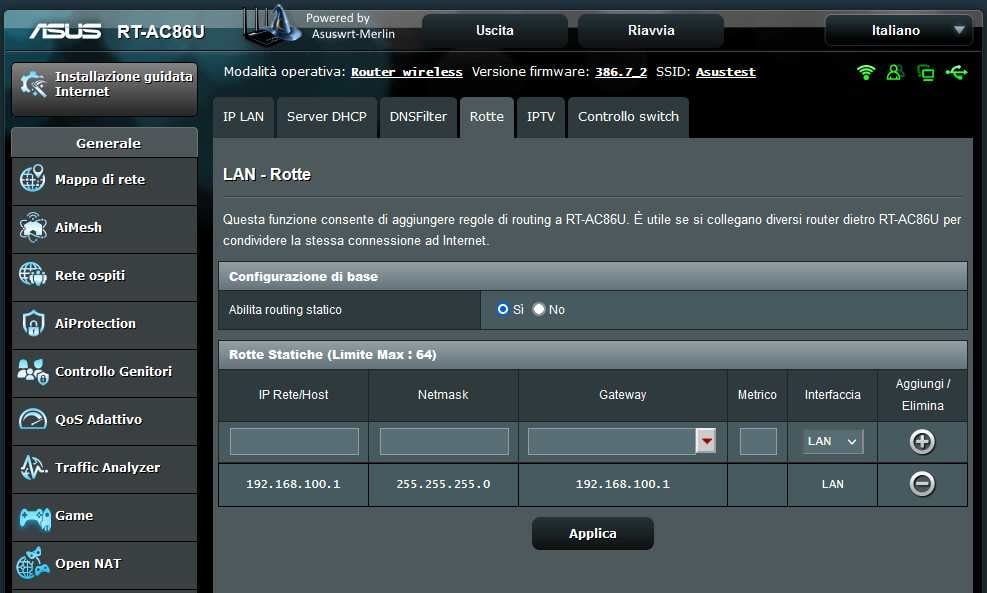 Insomma mi sono messa ad armeggiare per mettere il MIO router, un Asus ac rt86U, al posto della VS6.