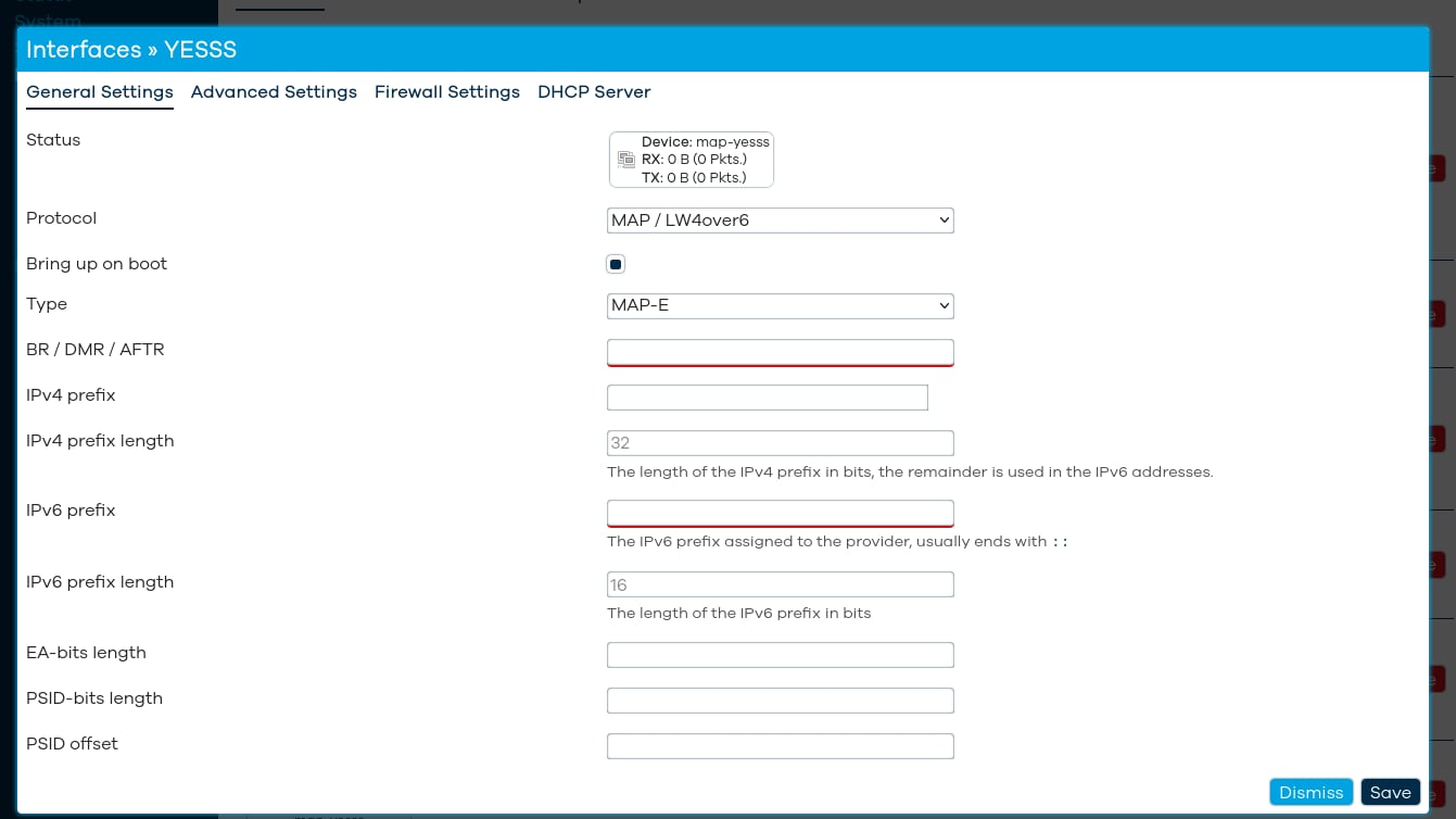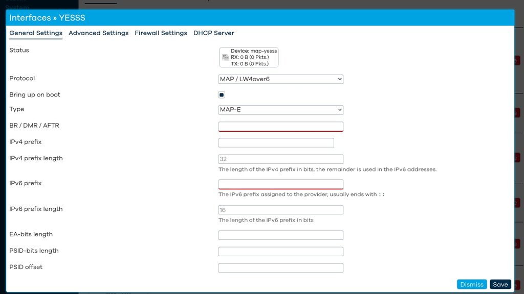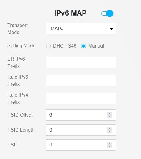 Per ora niente IPv4, la configurazione MAP-T viene salvata ma non va.