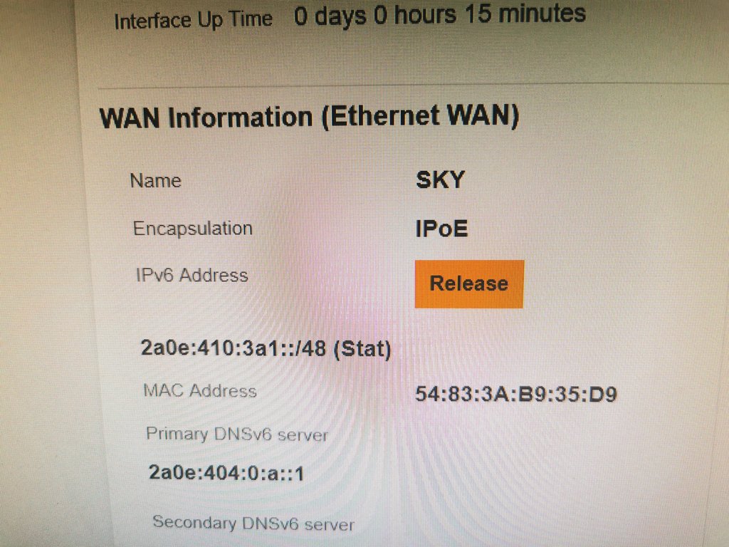 Il router continua a segnalare connettività assente (con tanto di led rosso). Confermo che il problema è proprio l’assenza di un indirizzo IPv6 sulla WAN.
