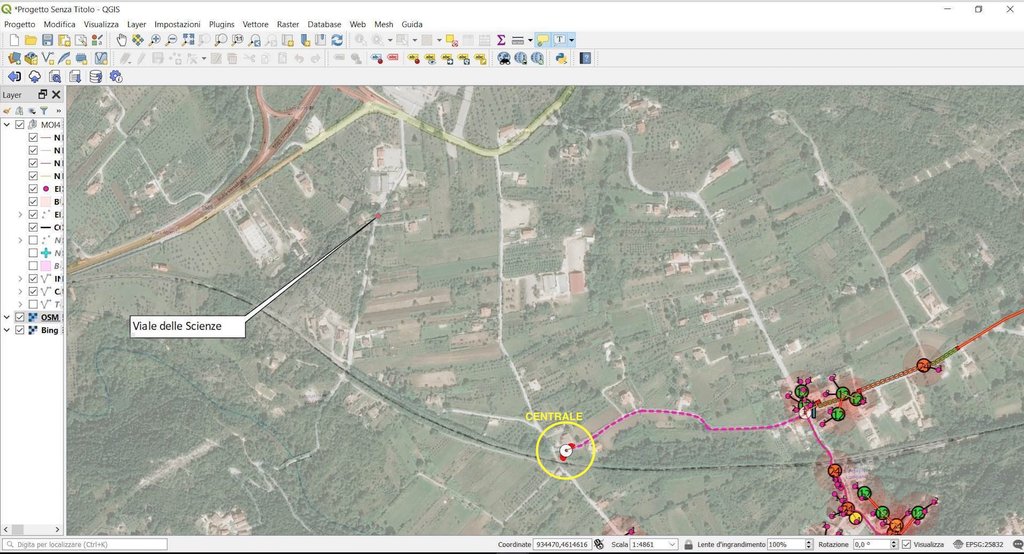 Foto tracciato ricevuto da Infratel (in giallo dove è posizionata la centrale TIM)