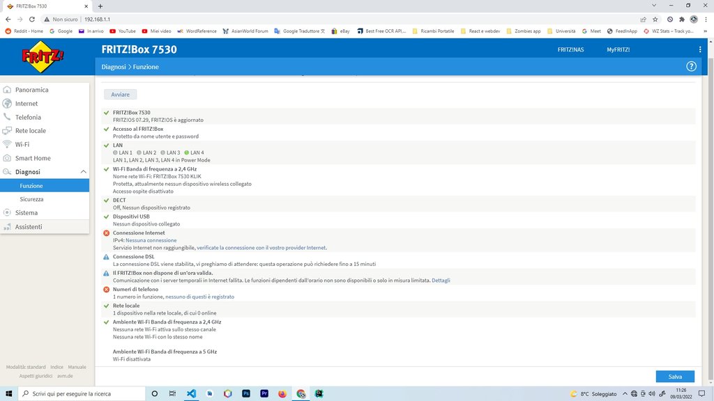 Se questo cambia qualcosa, dopo un po' di tempo si accende la spia "info" rossa sul fritz e resta accesa (non lampeggiante).