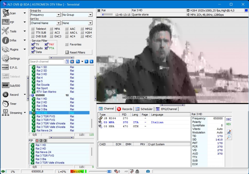 - Durante le ore di programmazione nazionale, le 3 versioni regionali avranno tutte lo stesso flusso video (in HD)