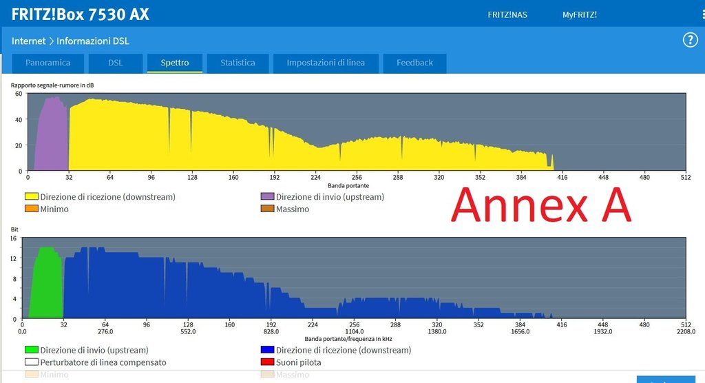 È normalissimo che se il modem si aspetta annex M mentre il dslam manda Annex A le portanti da 32 a 64 siano inutilizzate. Nonostante ciò la velocità è tornata simile a quella del modem tim? In qualsiasi caso per ottenere la migliore velocità adsl servono alcuni modem di vecchio stampo adsl only.