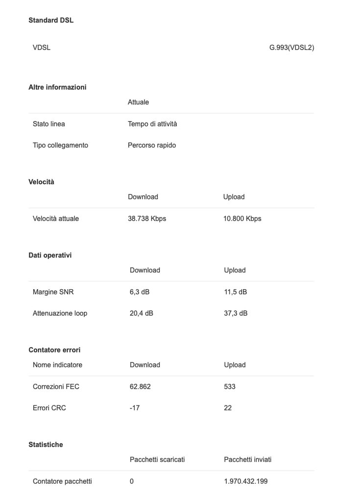 In 3 anni la velocità è calata parecchio partendo da 41/18 (down/up) fino ad arrivare qualche mese mese fa a 25/10. Quindi ho contatto l'assistenza Vodafone e dopo 1 mese è riuscita a mandarmi un tecnico tim (la prima volta l'ha mandato per sostituirmi la VSR con una VPS...).