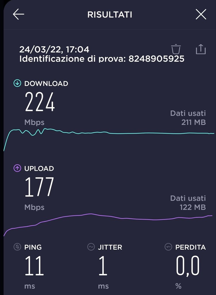 Ad oggi via cavo ad un PC la connessione va benissimo (942Mbps down 284 up)