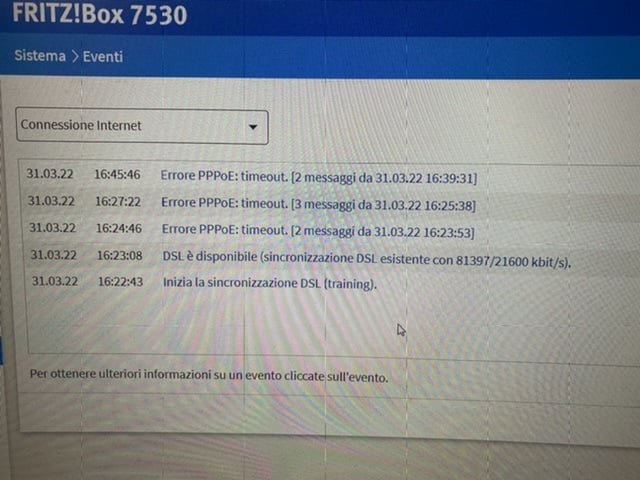 La connessione DSL risulta attiva, ma continua a dare errore PPPoe (timeout).