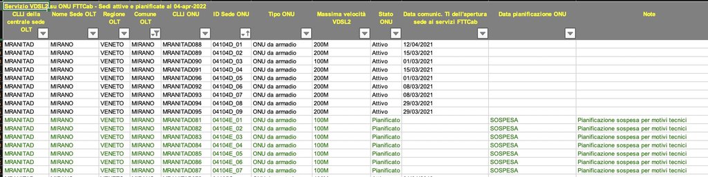Gli armadi di Mellaredo tra Marzo e Aprile 2021 sono stati tutti attivati (9 armadi), gli armadi di Pianiga invece sono sempre stati rimandati ed oggi scopro che son passati tutti a "Pianificazione sospesa per motivi tecnici" e si che la fibra è stata posata, hanno quasi tutti i dslam.
