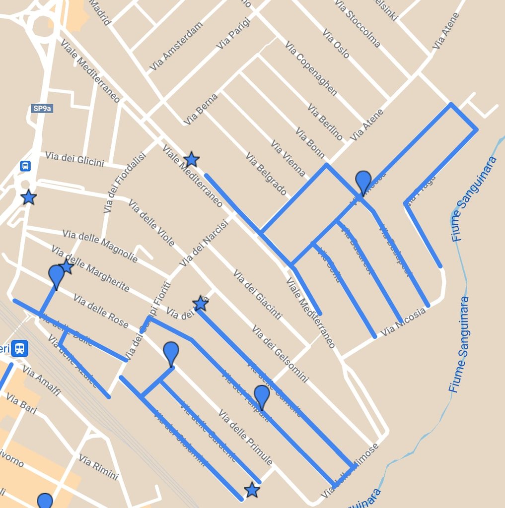 - Via Atene (solo il tratto compreso tra Viale Mediterraneo e Via Tirana)