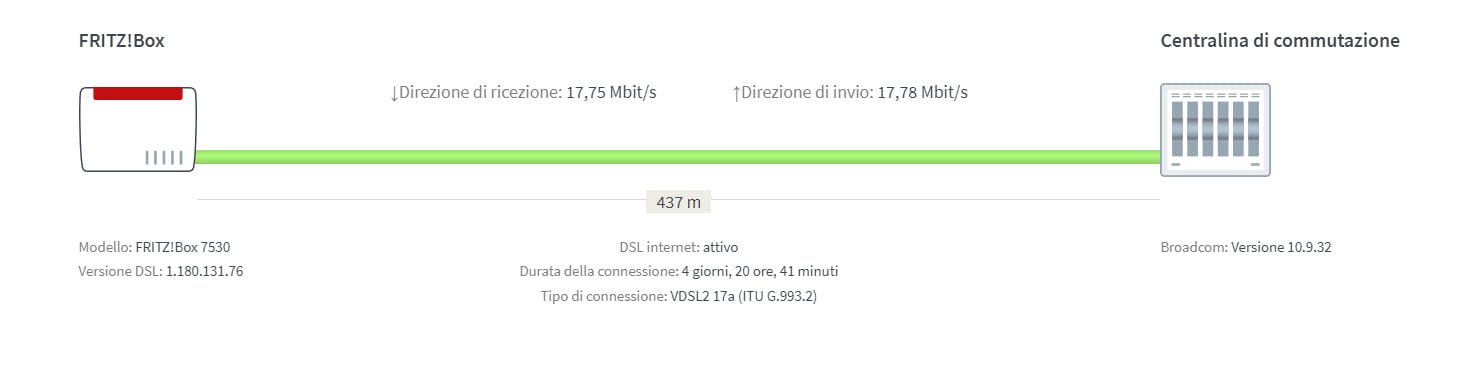 LucaTheHacker andredo777 andredo777 La linea prima era messa bene, ora invece sembrerebbero esserci problemi già nei primi metri. Hai toccato l'impianto di casa di recente? (O se abiti in condominio, sai se qualcuno ha messo mano a qualcosa?) Comunque se guardi nei log del fritz dovresti vedere qualcosa tipo "è presente una derivazione sulla linea"