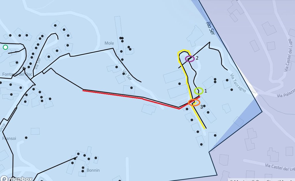 Tratta evidenziata in giallo: tratta per la quale non è stato fatto nessuno scavo/predisposizione aerea.